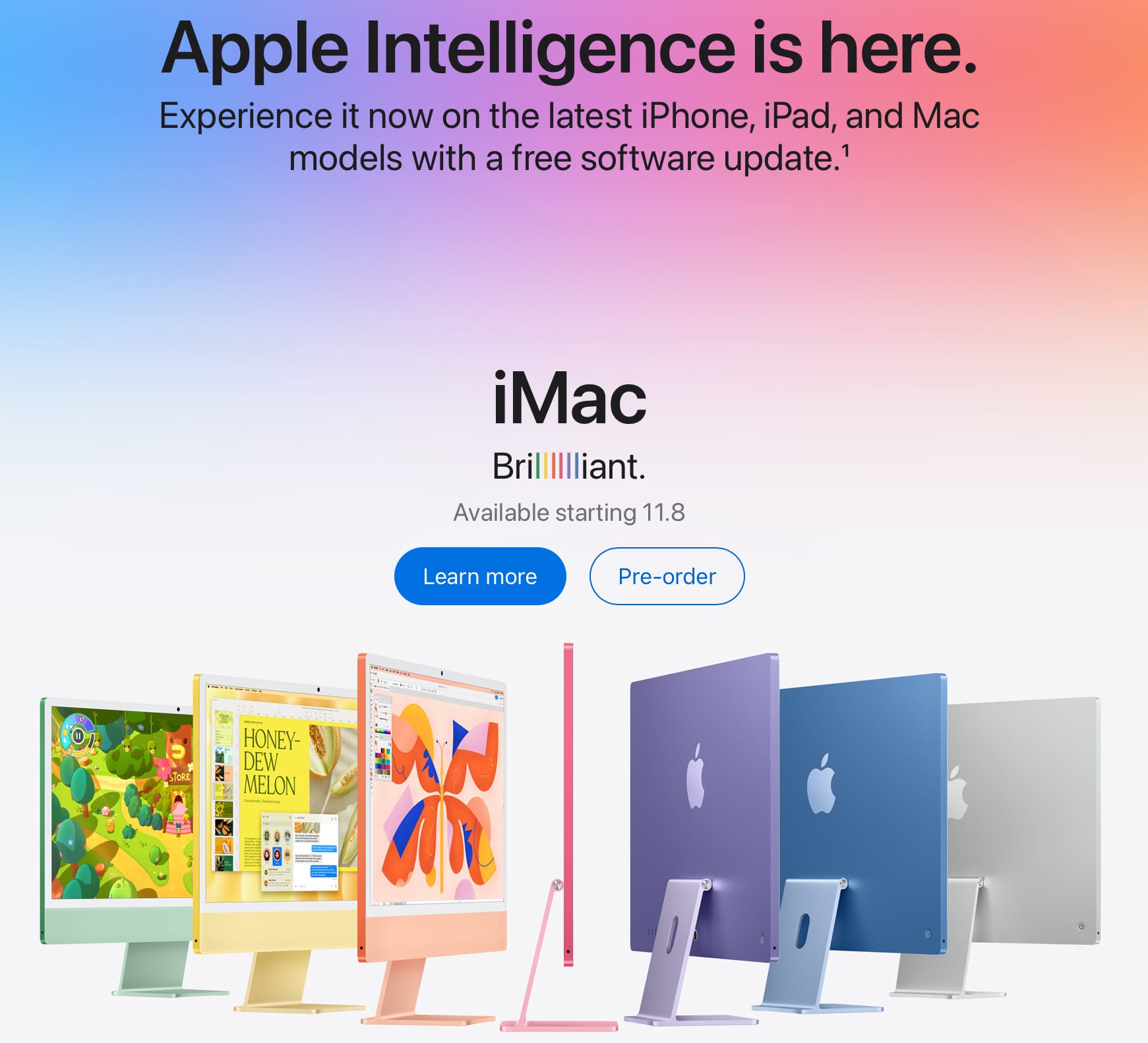 Update: And here’s the new M4 iMac (available November 8). “New” colors, which look a lot like the old colors. And yes, the machines all start with 16GB of RAM, undoubtedly for Apple Intelligence. In hindsight, it should have been obvious that the iMac would be released first as it has the M4 chip whereas the Mac mini and MacBook Pro will have M4 and ‘M4 Pro’ options…