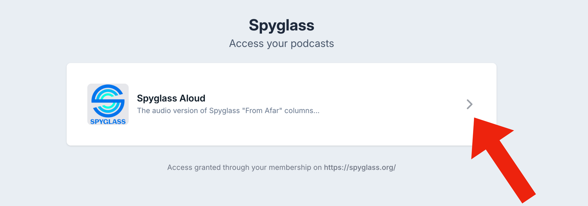 Clicking on 'Spyglass Aloud' here will take you to a page where you can easily subscribe via your podcast player of choice, and also sign up for email alerts when new episodes are published if you want (if you subscribe via a podcast player, they'll automatically appear, of course). This all works on mobile and desktop.
