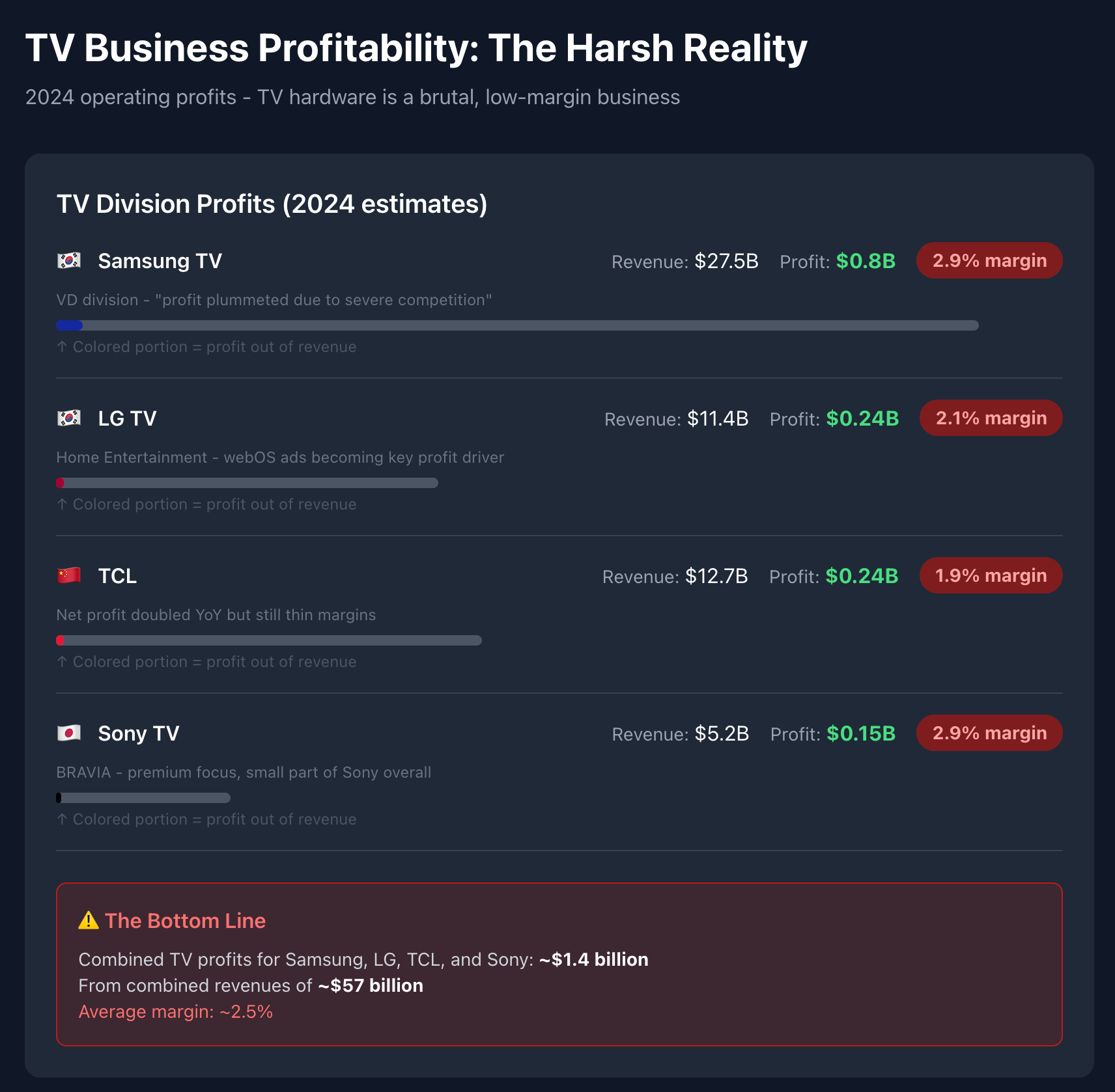 Despite the aforementioned growing importance of the technology in homes around the world over that time – and again, even to this day! – it's an extremely low-margin business. With margins continuing to get squeezed even further over time.