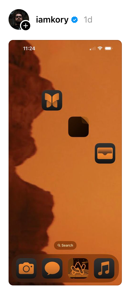 Ethan Robinson upgraded to the new iOS 18 beta (apps where ever you want! with tinting as ugly as you want!) and made a lovely looking Dune-related homescreen. Then in walked Kory Westerhold...