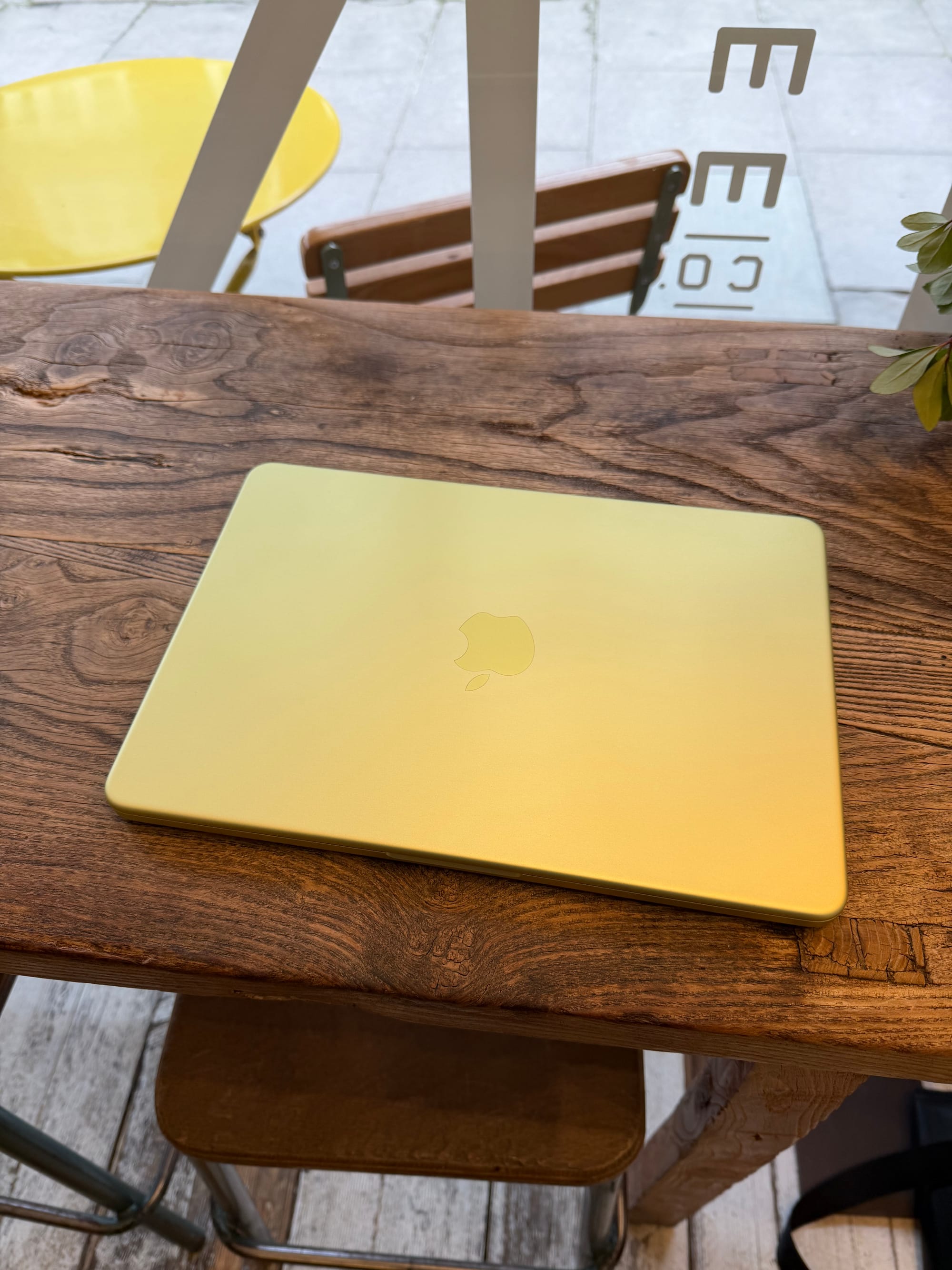 Taking the Citrus out-and-about garners a lot of looks. People clearly know it's a MacBook but perhaps haven't seen the Neo before and might think it's a custom paint job. That plus the Apple logo blending in far more as it's color-matched and not metallic. Like many of Apple's machines, the color shifts depending on the lighting situation. In daylight, the "Citrus" Neo almost glows. It's fun to look at while using it!