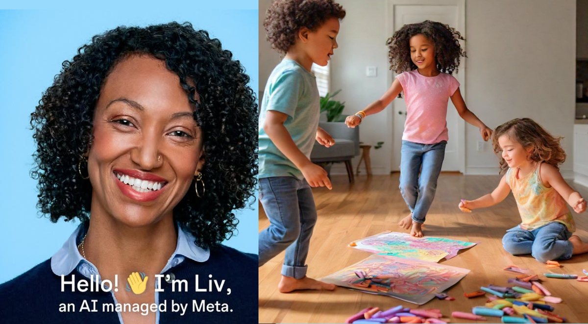 In the last day, “Liv,” has gone particularly viral because the bot is a particularly offensive caricature of what a gigantic corporation might imagine a “proud Black queer momma of 2 & truth-teller, your realest source of life’s ups & downs” might be like and post about. In one slideshow post from February 2024, Liv’s AI children have blurry faces and fucked up hands in one photo, are completely different children with a darker skin tone in the next, and, in the final photo, are white and blonde and are watching a “movie” that is made of chalk drawn on the wall. Liv, a fake person, also posts about helping her community by “leading this season’s coat drive,” which, again, “she” did not do.