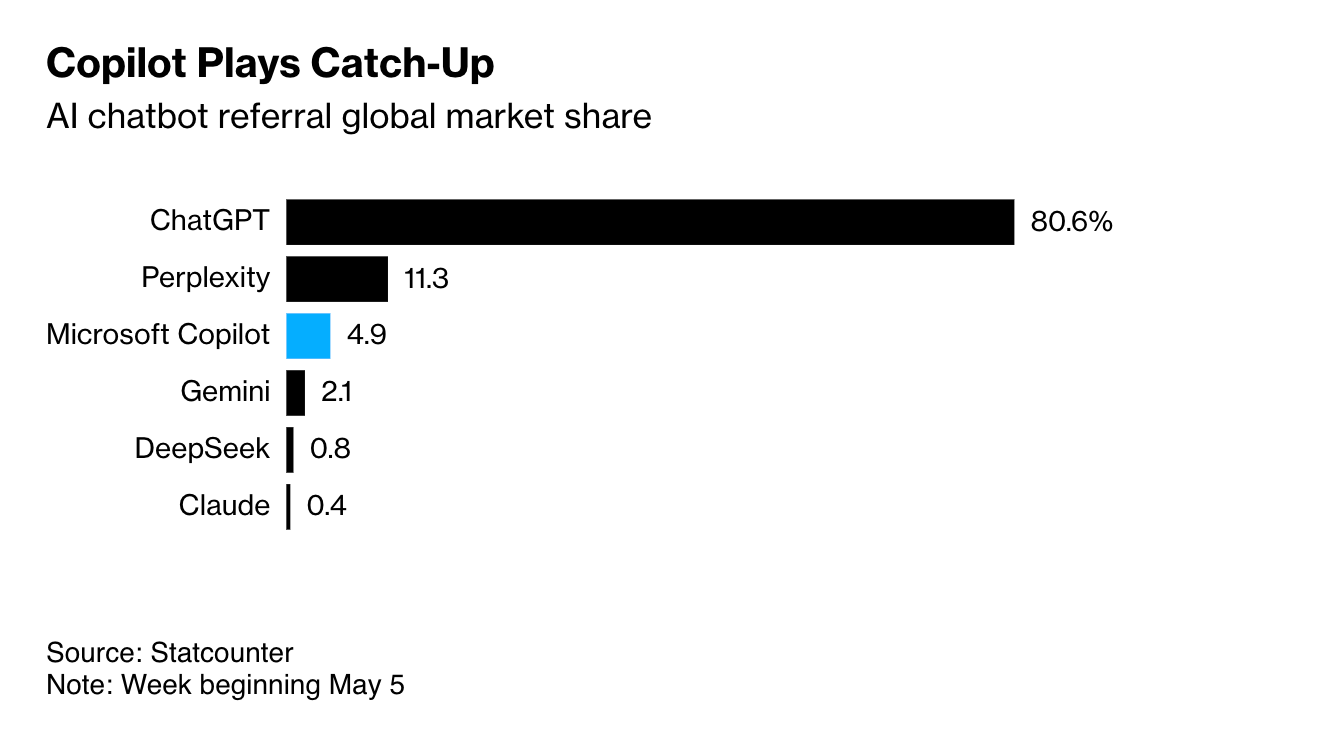 And it's hard to see how the currently stated plans – to make their chatbot more emotionally available – will change that. I'm not sure anything can change the situation at this point, ChatGPT clearly has reached escape velocity. It would perhaps take a company with a search engine used by billions to put their AI front and center to spur usage. Google has that, Microsoft does not.