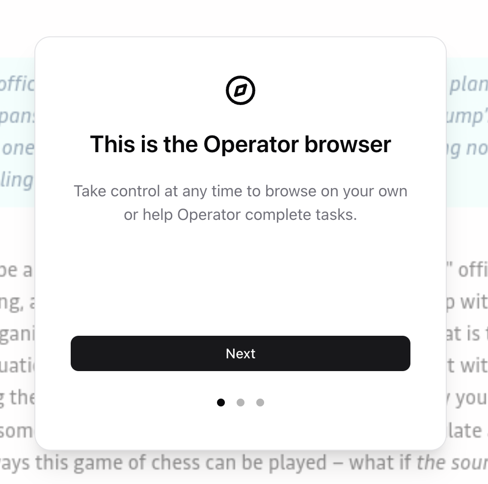 Well, just a few months later, here we are. And interestingly enough, Operator runs on, what else? Chrome. It seems to be a customized version, which undoubtedly locks down the software more so than a regular web browser, but it's Chrome running an 'OpenAI Operator' extension (as my "taking over" and clicking around made clear). That makes sense to start; Chrome is the most popular browser in the world (which is why the DoJ wants to rip it away from Google). OpenAI had to train Operator on data for how others use the web, and most everyone does this on Chrome.3 And just as importantly, all sites and services work on Chrome, the same of which cannot be said of all browsers. So Chrome it is. For now.