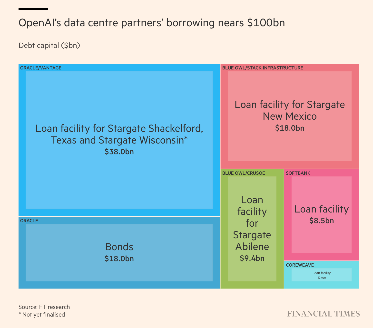 The $100bn of bonds, bank loans and private credit deals tied to OpenAI are equivalent to the net debt directly held by the six largest corporate borrowers in the world — including carmakers Volkswagen and Toyota and telecoms groups AT&T and Comcast — according to a 2024 report by asset manager Janus Henderson.