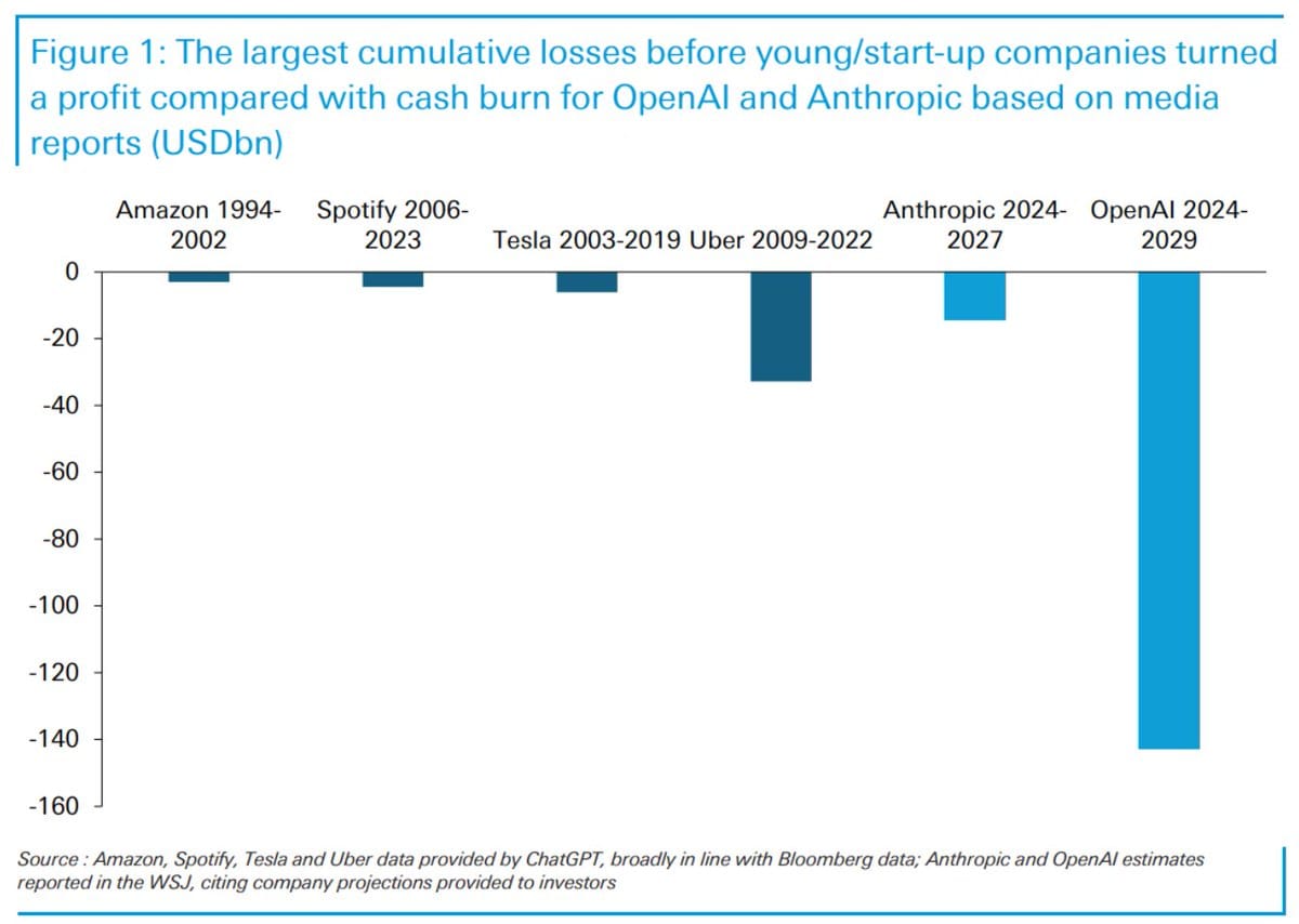 With all the talk of the AI Bubble, you often hear OpenAI's spend talked about in context of what both Uber spent to get to profitability and before that, Amazon. Well, Jim Reid and Deutsche Bank actually charted it out. And... wow. Code Red indeed.