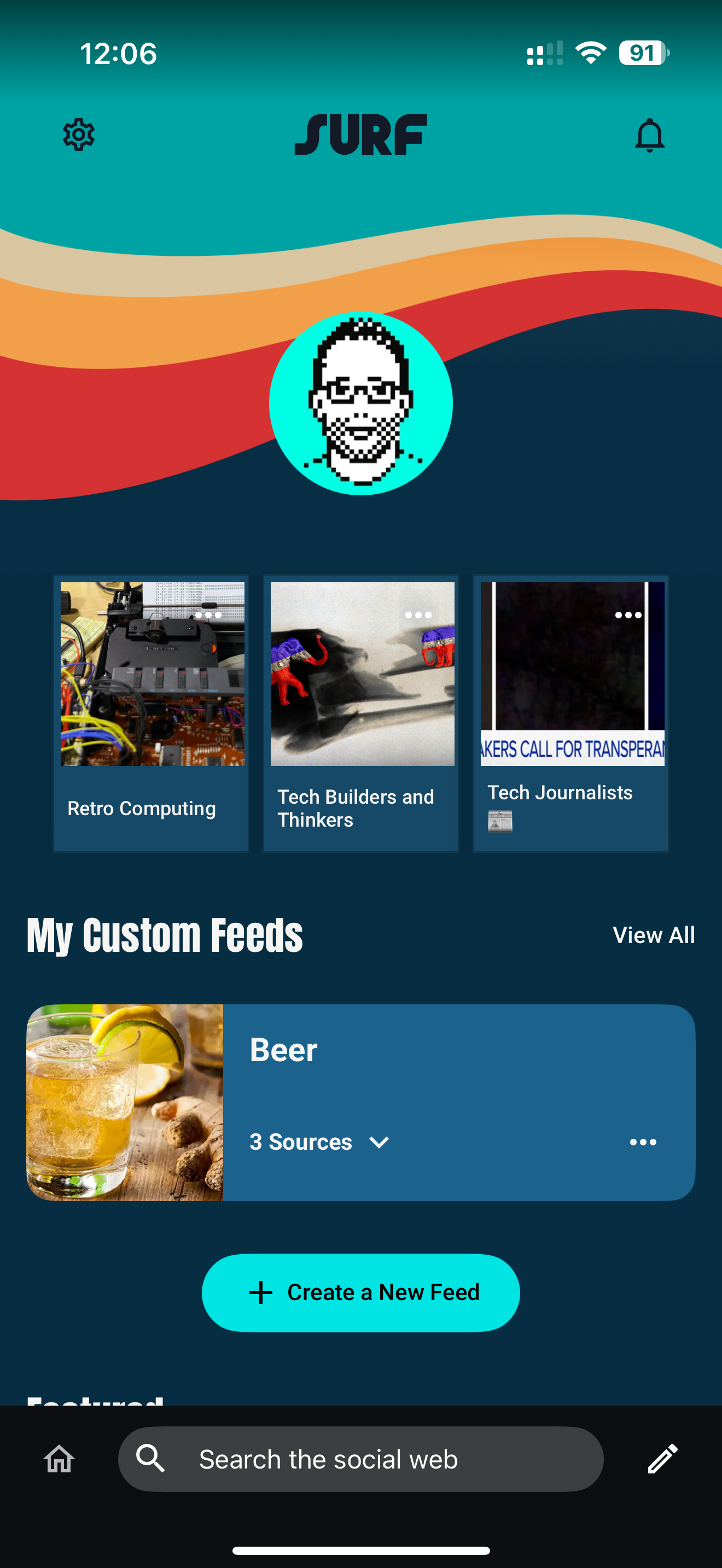 I've only had the app for a day or so, but you can quickly see what it's trying to do and how it can be compelling after just a few minutes of usage. I made a 'Beer' feed, which I was quickly able to populate with some feeds that Surf recommended – it's pretty good! Even better is a 'Retro Computing' one that McCue himself made and clearly put more time into. Again, that's the thing: it puts the onus on the feed creators now – who are really curators. Flipboard has been doing this for a long time with their 'Magazine' concept, but I think marrying that to these newer ideas is smart.