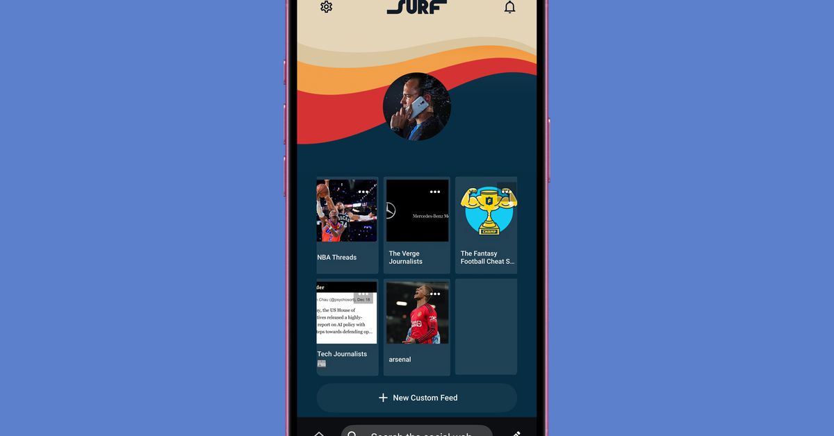 But wait, sorry, back to the whole “browser for the social web” thing. McCue’s best explanation of Surf’s big theory is this: in a decentralized social world, the internet will be less about websites and more about feeds. “You won’t put in, like, theverge.com and go to the website for The Verge, but you can put in ‘the verge’ and go to the ActivityPub feed for The Verge.” Your Threads timeline is a feed; every Bluesky Starter Pack is a feed; every creator you follow is just producing a feed of content.
